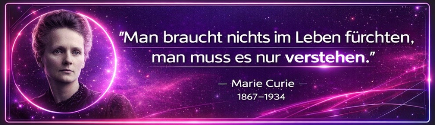 Frei nach Marie Curie: Wenn wir unsere Talente entdecken und mutig denken, verdoppeln sich Selbstvertrauen und Kraft.